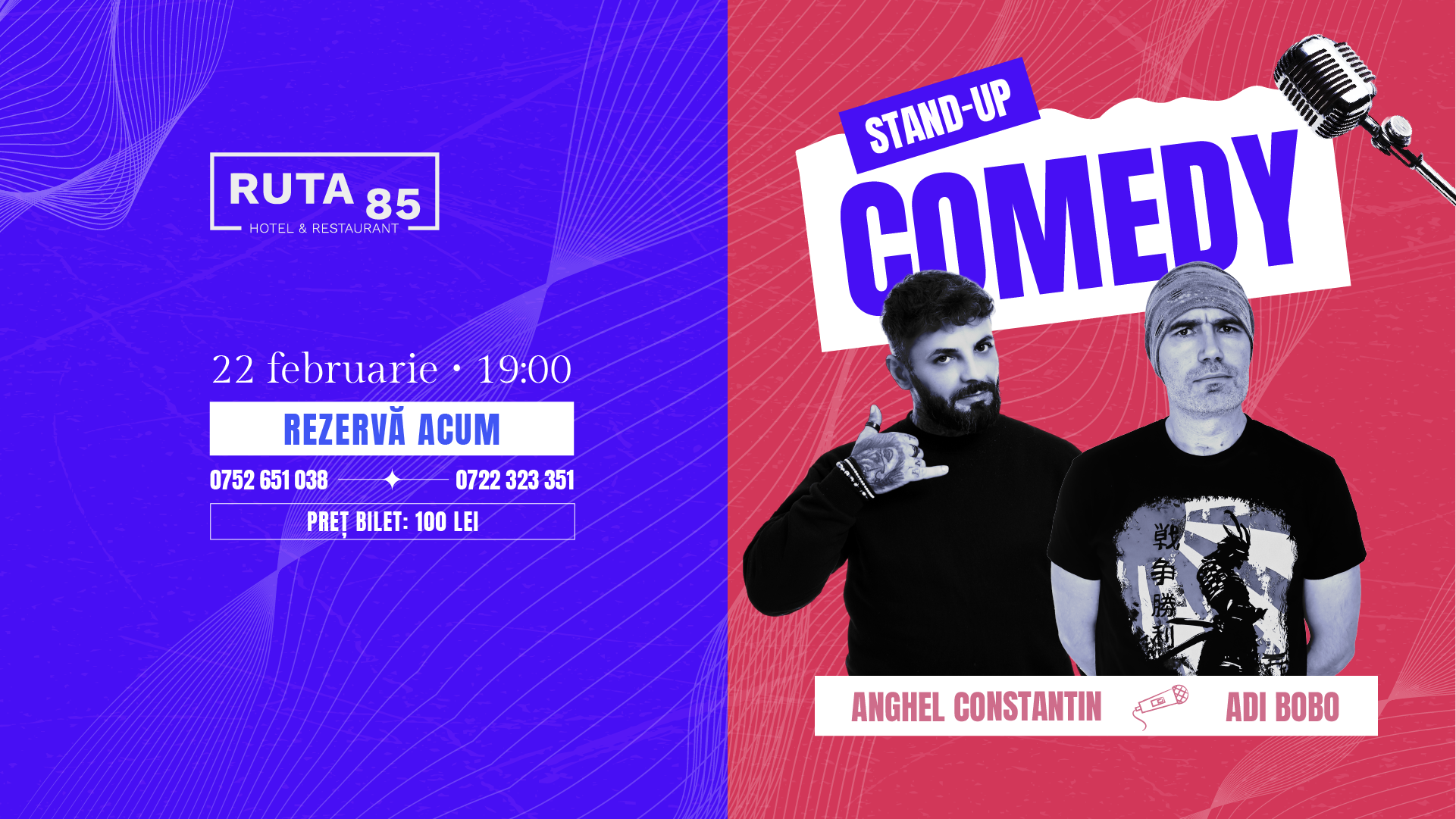 Sâmbătă, 22 februarie, te invităm la o seară de neuitat plină de hohote de râs, glume spumoase și o atmosferă vibrantă! Alături de Adi Bobo și Anghel Constantin, vei trăi momente pe care le vei povesti mult timp. Ora: 19:00 Unde: la Restaurant Ruta 85🎟️ Preț bilet: 60 lei/persoană Adună-ți prietenii și hai la o […]