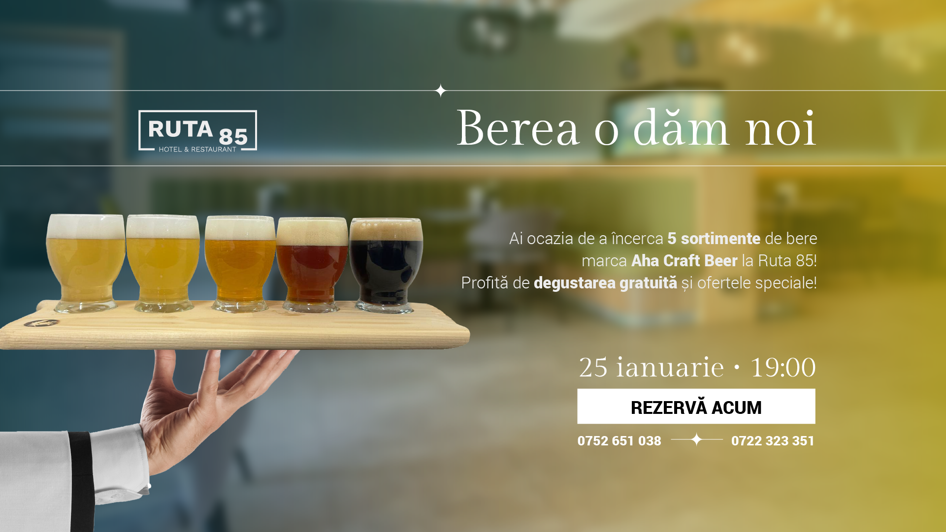 Pe 25 ianuarie, începând cu ora 19:00, te invităm la Ruta 85 să descoperi 5 sortimente de bere marca Aha Craft Beer și să te bucuri de o degustare gratuită care îți va răsfăța simțurile!Profită de ocazie pentru a încerca arome unice și pentru a te bucura de ofertele speciale care te așteaptă.𝐕𝐫𝐞𝐢 𝐬ă 𝐢𝐞𝐢 […]